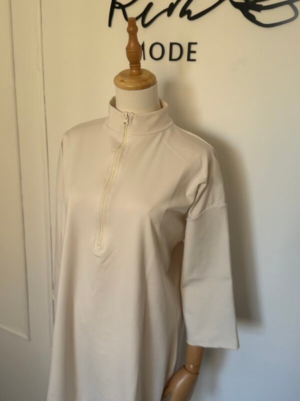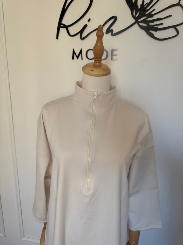 ✨ Col montant zippé, manches 3/4 pour une touche chic et contemporaine.